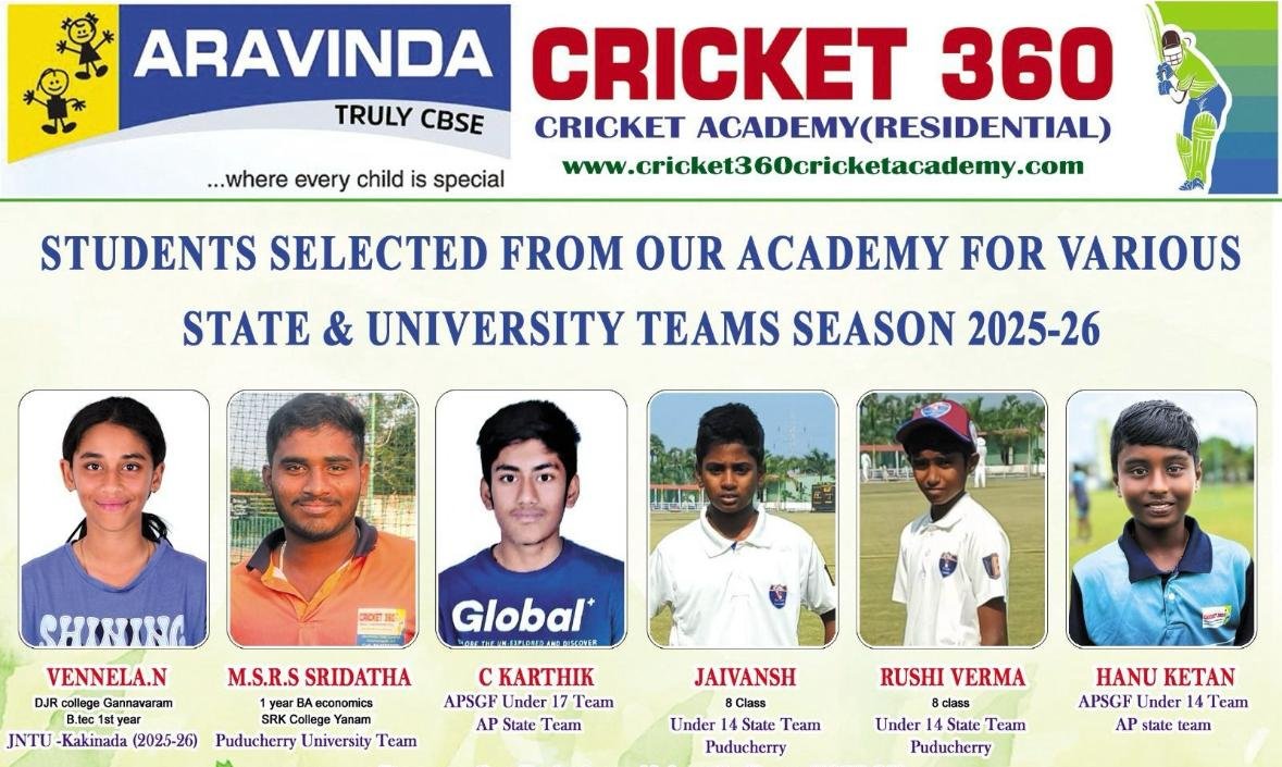 Nestled in the heart of Kunchanapalli, at the lush green grounds of Aravinda CBSE School, Cricket 360 Cricket Academy is a premier training center for budding cricketers of all age groups.
